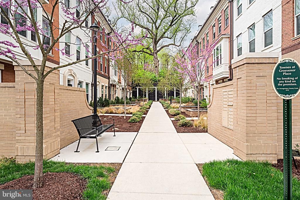Moments from the Grosvenor-Strathmore Metro, this luxury 4-level brick townhome offers refined living, smart features, and effortless North Bethesda convenience. Thoughtfully designed and virtually staged, it is truly move-in ready in the sought-after Townes at Grosvenor Place. PRIVATE ELEVATOR & CARPET-FREE LIVING A private elevator services all four levels, and wide plank hickory hardwood floors run throughout the home. VERSATILE LAYOUT The entry level includes a bedroom with ensuite bath, perfect for guests, a home office, or multigenerational living. BRIGHT MAIN LEVEL An open-concept main level features abundant natural light, 9-foot ceilings, refined moldings, gas fireplace, and continuous hardwood flooring. GOURMET KITCHEN The chef’s kitchen boasts quartz countertops, 42" frameless cabinetry, ceramic backsplash, under-cabinet lighting, premium smart stainless steel appliances, and a custom banquette with extra pantry storage. LUXURY BEDROOM LEVELS The primary suite offers a spa-inspired bath and large walk-in closet, plus an additional ensuite bedroom and convenient laundry with LG smart washer and dryer. LOFT & ROOFTOP TERRACE The top-level loft provides a fourth bedroom, full bath, and wet bar rough-in, opening to a spacious rooftop terrace with gas rough-in—ideal for relaxing or entertaining. SMART & ENERGY-EFFICIENT Highlights include dual-zone HVAC, LED recessed lighting, custom blinds, Honeywell smart thermostat, smart lock, and enhanced Cat-6 wiring. PREMIER LOCATION & POOL ACCESS Enjoy easy access to Bethesda, DC, Rock Creek Park, I-270, and I-495, plus nearby Pike & Rose, Strathmore, Wildwood, and NIH/Walter Reed. Optional pool membership at Grosvenor Park I just across the street offers a perfect summer escape.